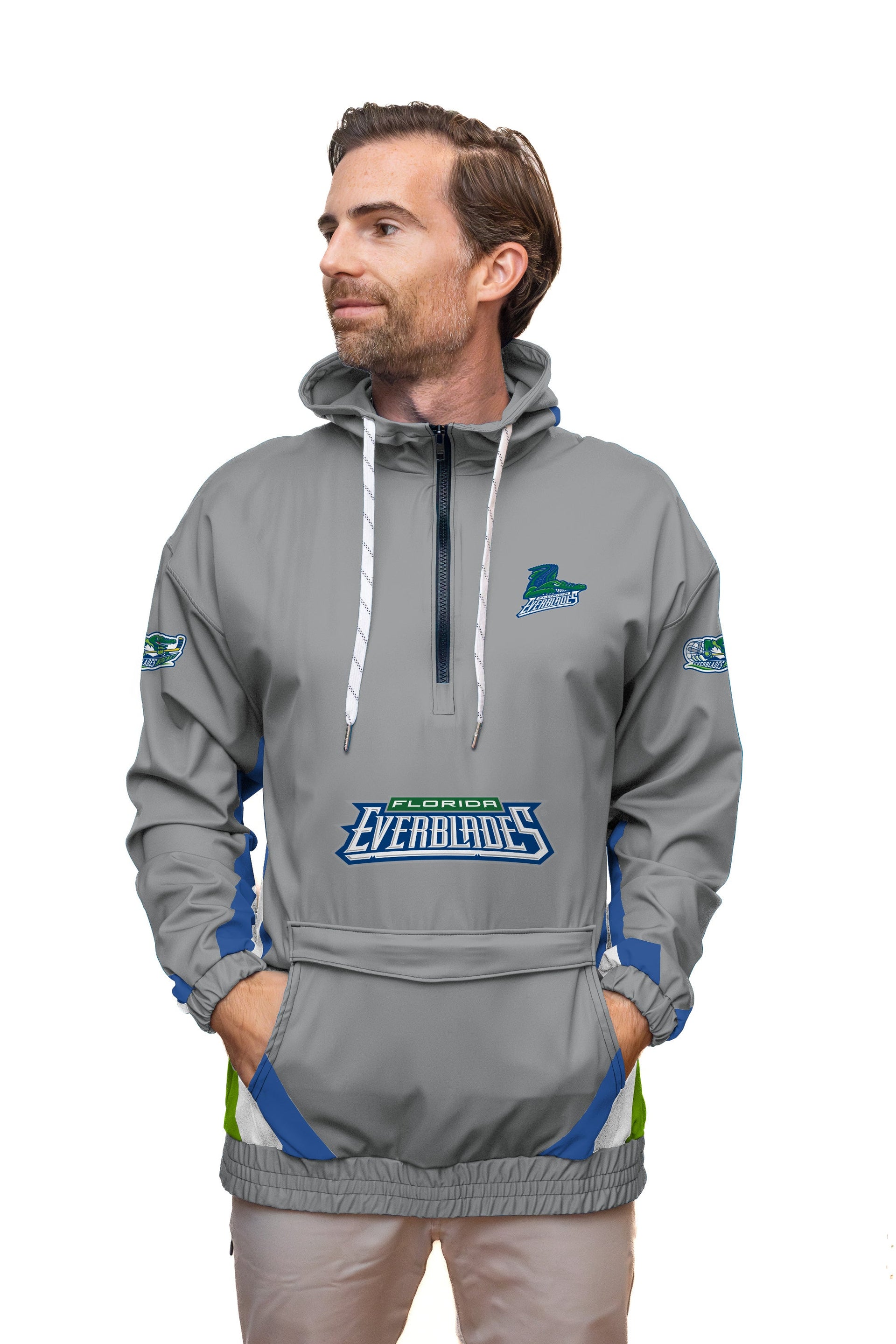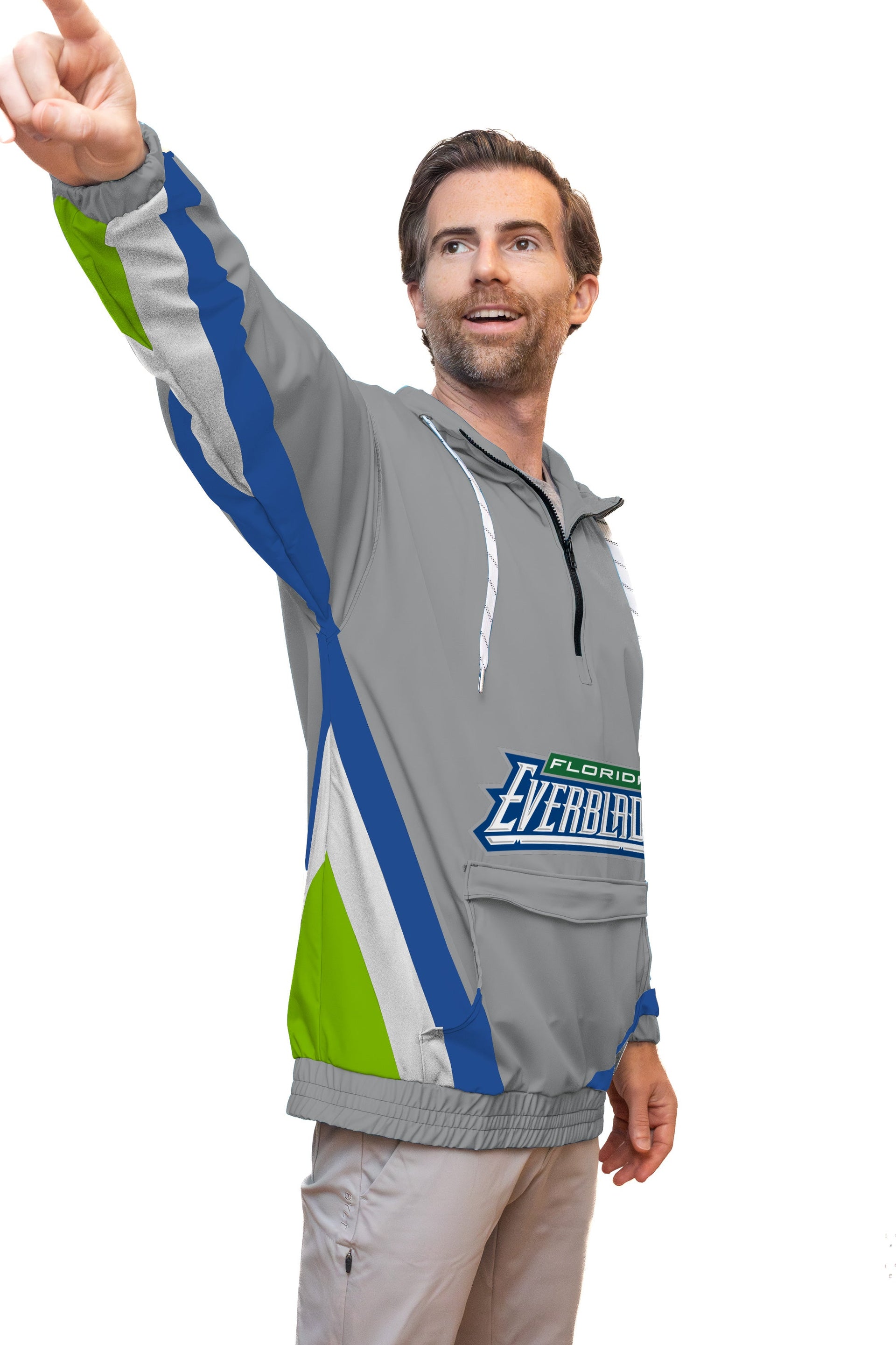 Your new favorite Windbreaker is here - the Florida Everblades Grey Hockey Windbreaker, brought to you in collaboration with Bench Clearers! Designed with official logos printed on lightweight breathable polyester, this windbreaker is sure to catch eyes - and keep you comfy - all season long! This officially licensed, performance-fit polyester windbreaker is perfect to wear any time of the year. ????