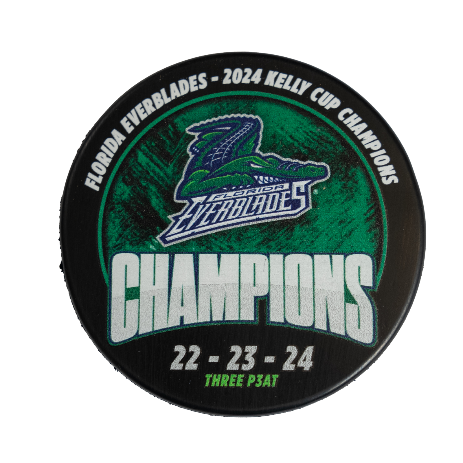 Celebrate the Florida Everblades victory with the Puck - 2024 Kelly Cup Champions. This commemorative puck features the official team logo and is a must-have for any die-hard fan. Own a piece of history and display your team pride with this limited edition champ puck.