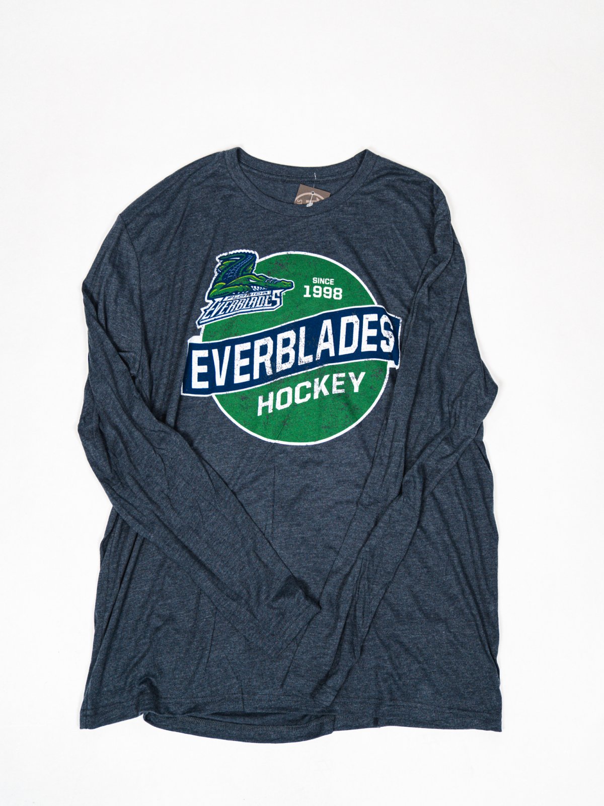 Stay comfortable and show off your team pride with this Everblades Long Sleeve Retro Shirt. Made for ultimate comfort, this shirt is perfect for any fan or sports enthusiast. With its long sleeve design, you can keep warm while cheering on your team. Perfect for any game day or casual outing.