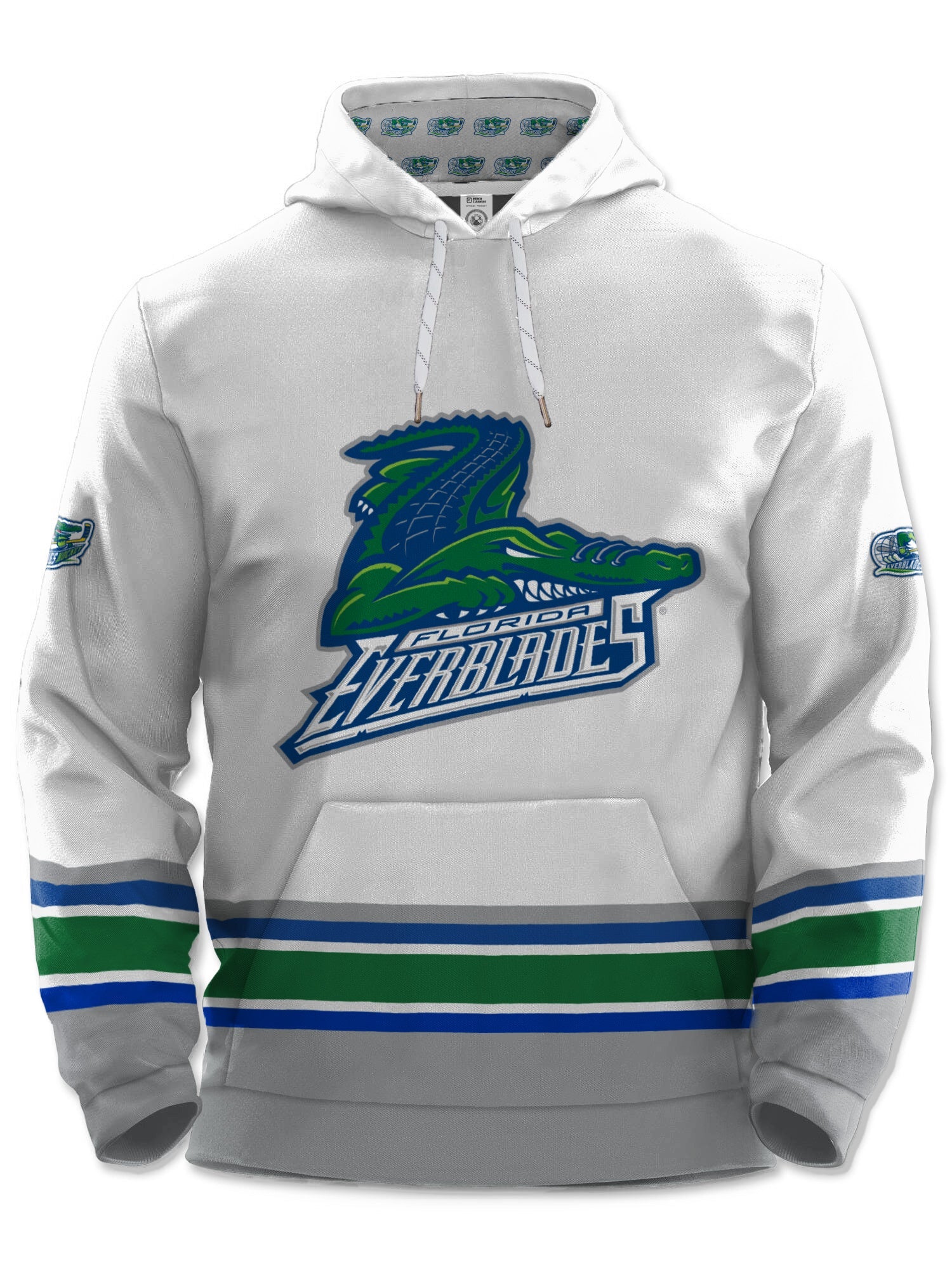 Get ready to rock your new favorite Hockey Hoodie - the Bench Clearers Florida Everblades White Hockey Hoodie! Made with lightweight, breathable polyester and featuring official team logos, this exclusive collaboration with Bench Clearers is a must-have for any fan. Stay comfy and stylish while repping the Blades all year long. ????